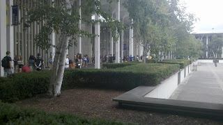 2) Skateboards. Ban them from the podium, please. There seems to be more young men riding them every semester. A chill goes up my spine every time one whizzes past me. I have a vision of being knocked down, of my foot getting run over, of my left leg getting more injured, of my right leg joining my left's feebleness, of losing the ability to walk, or at the very least, acquiring an even worse limp. I know I sound like a bitter old lady who doesn't remember the joy of being young, but why can't the d-mn sk8ters just walk?